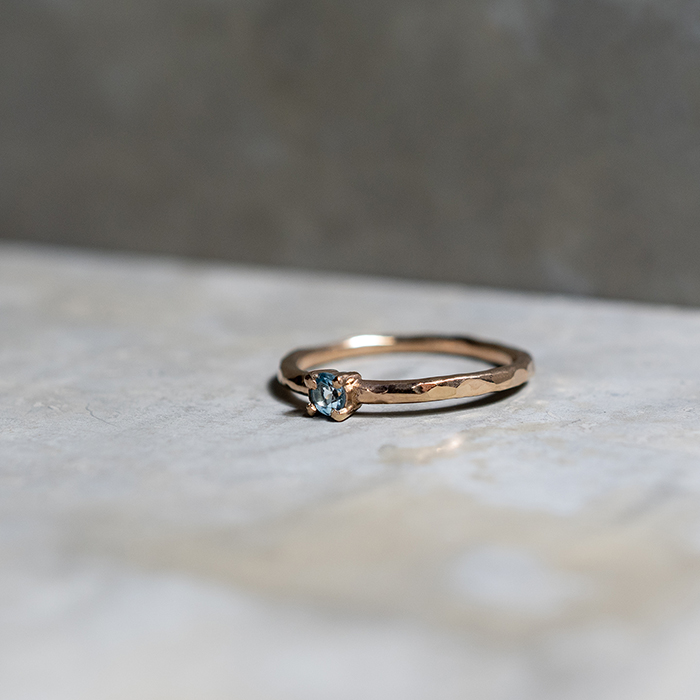 <NEW ARRIVAL>スイスブルートパーズ ラウンド3mm PGPピンクゴールドプレーンリング 1.5mm幅 槌目|FA-1125