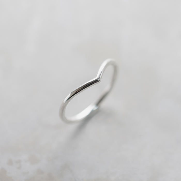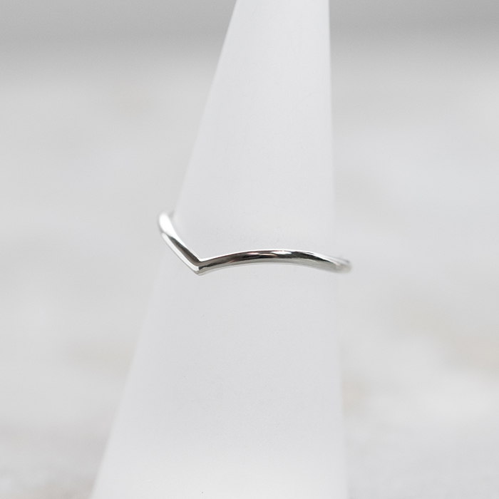 V字にカーブした動きのあるフォルムが印象的なシルバーリング。